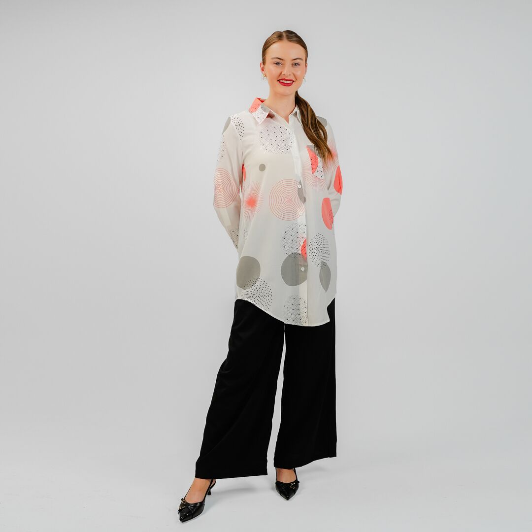 Elevate your wardrobe with this stylish Geometric Print Button-Up Shirt, featuring a fresh and modern design. Crafted from lightweight and breathable fabric, this shirt offers both comfort and elegance.